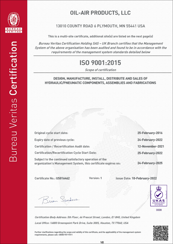Hydraulic Headquarters has been an ISO certified company since 2003. We just achieved our new certification in November 2018 to the latest ISO standard ISO 9001:2015. Our quality system ensures that our customers consistently receive products that meet or exceed industry standards.